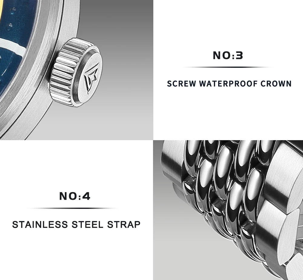- Automatic Self-Wind Movement: Powered by the reliable Japan MIYOTA 8215 automatic movement, delivering precise timekeeping with effortless self-winding convenience.