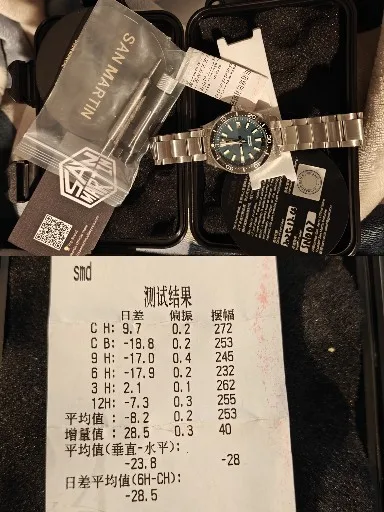 The watch arrived with a timekeeping test report included. Case profile and bracelet design fit my wrist perfectly. Time setting is smooth and easy, the crown works flawlessly. Bracelet adjustment is interesting, with pins using an inner tube construction. San martin store provides detailed bracelet assembly photos and a helpful walkthrough video. Overall, i really like the quality of this san martin watch.