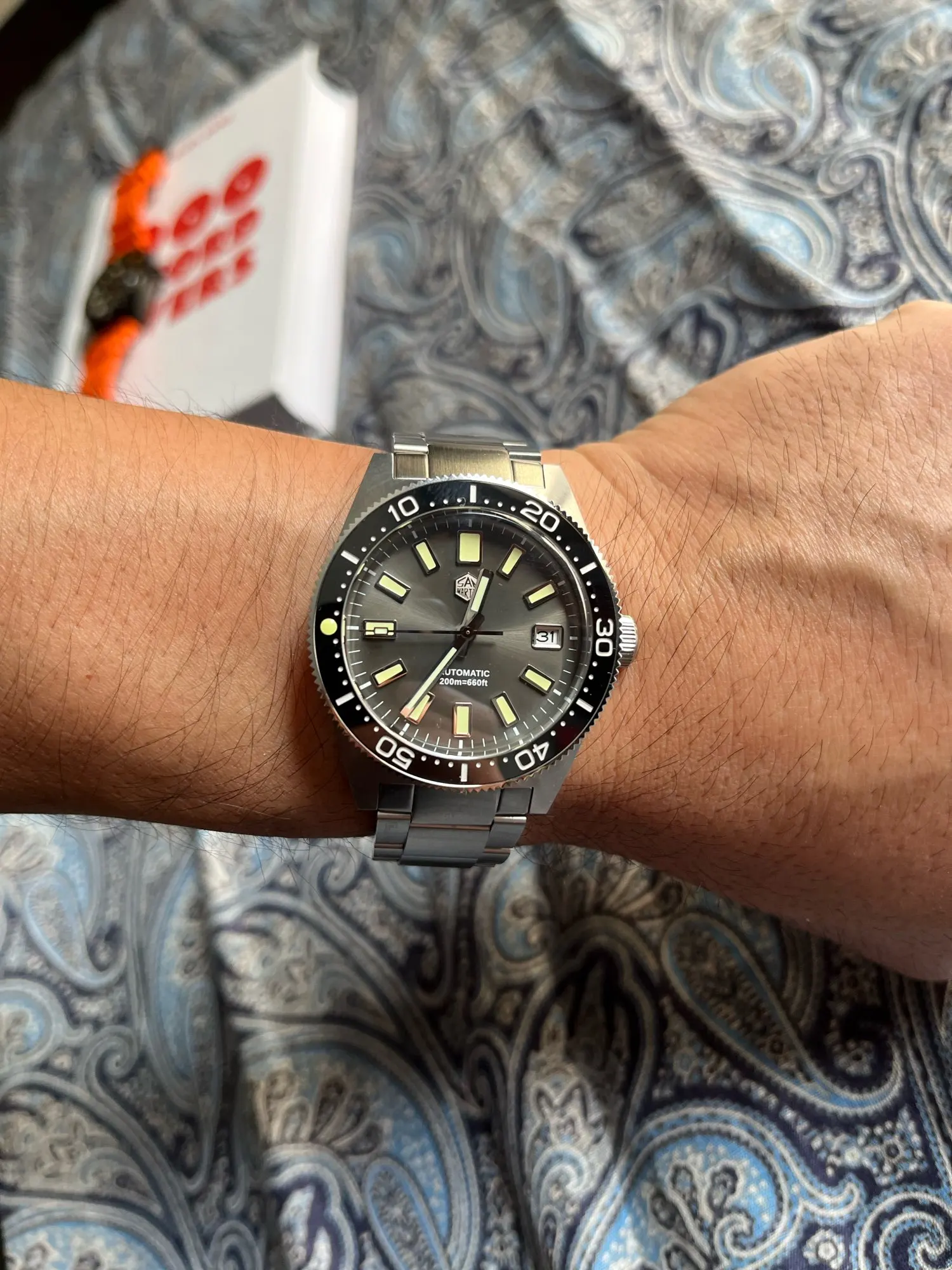 A refined 62MAS-inspired diver combining classic proportions with modern finishing. Powered by the reliable NH35 automatic movement, featuring a sapphire crystal with AR coating, ceramic bezel, and strong C3 lume, this watch delivers professional dive performance with everyday luxury wearability.